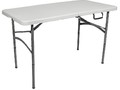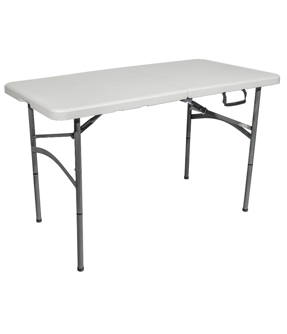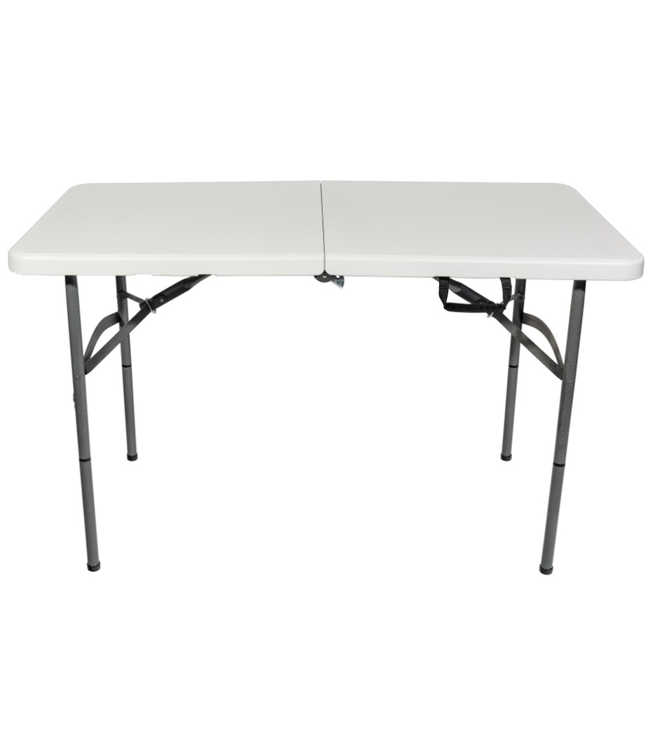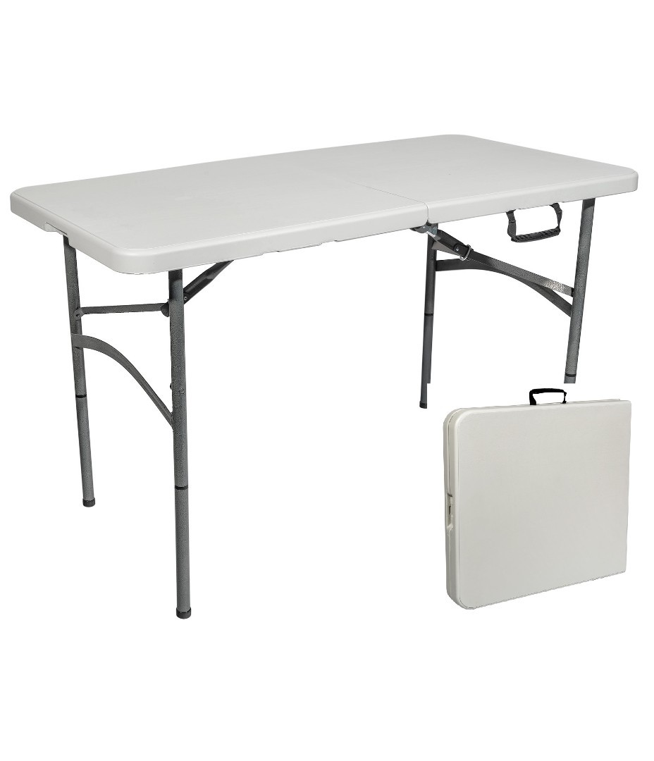 Стол прямоугольный 122*61*74* см. Столешница: пластик, 4,5 см. Каркас - металлическая труба 25*1.2 мм. Упаковка - картон, по 1 шт. в коробке. Столешница складывается.
